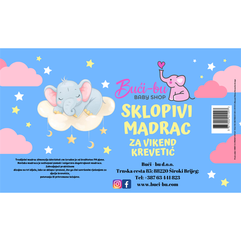 Sklopivi madrac dimenzija 120x60x5 cm.