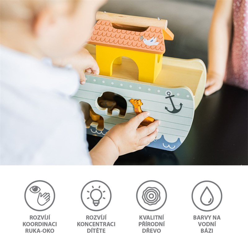 Neka vaš mali pustolov spasi životinjsko carstvo, baš poput biblijske priče o Noi i arci. Drvena igračka razvija koordinaciju oko-ruka, logično razmišljanje, maštu i uči prepoznavanju životinja.