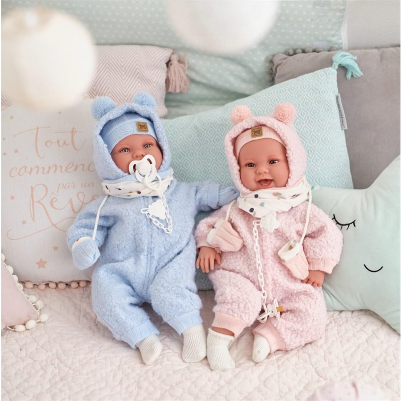 • Upoznajte Talu, vrlo sretnu bebu lutku koja voli biti na toplom u svojoj ružičastoj gegici, odgovarajućoj kapi, rukavicama i šalu. Talino mekano tijelo savršeno je za maženje, a kada joj stisnete trbuh ona se smije i kaže "mama" i "tata". Ova vesela lutka idealan je pratitelj za maštovitu i njegujuću igru ​​vašeg djeteta.