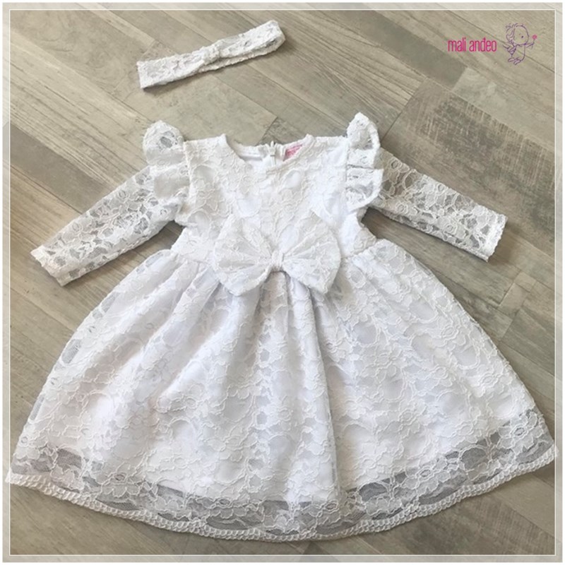 • Ako volite čipku, voljet ćete i ovu haljinu. Haljina Enea cijela je izrađena od cvjetne čipke u bijeloj boji i to je čini pravim izborom za krštenje male princeze. Čipka je modni hit, a haljinu odmiče od prosjeka i tako je čini modelom idealnim za formalna događanja. Sav dojam upotpunjuju volančići na ramenima, kao i mašna na struku.