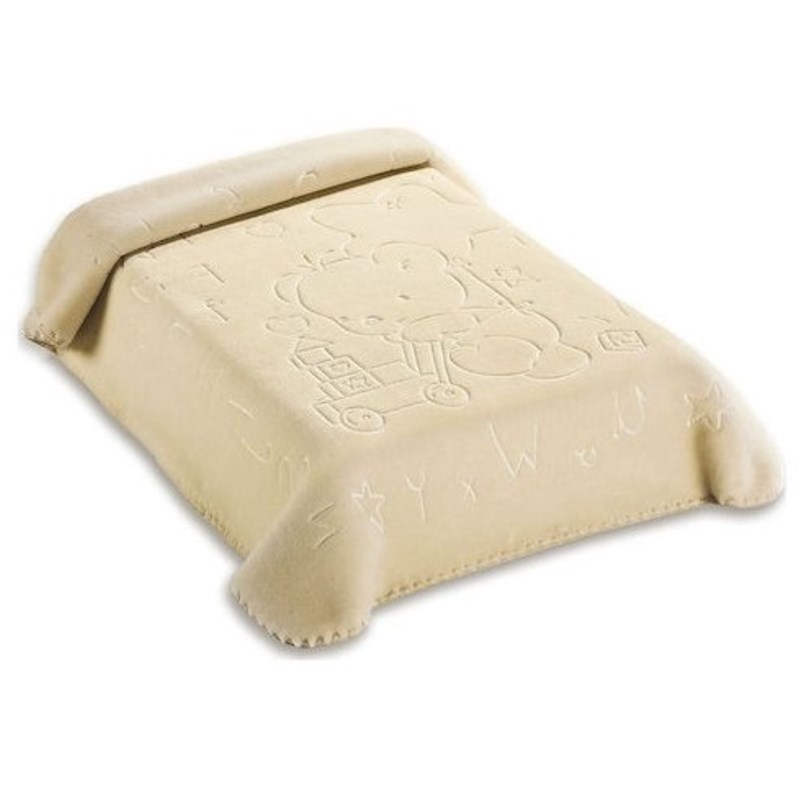 Vrlo topla dječja deka tipa "spaniel" Baby Perla iz radionice španjolske tvrtke BELPLA, dimenzija 110x140cm - premium serija LUX - kombinira uzorak zvijezde koja svijetli u mraku i reljefni uzorak "medo i oblaci". .